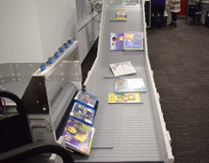 An automated material handler reduces the amount of staff time needed to sort books before returning them to the shelves.