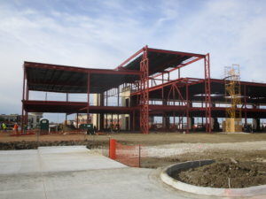 The 55,000 square foot structure consists of reinforced concrete foundations, structural steel framing with composite floor decking, metal roof decking, and architectural precast wall panels. Large, interior atriums were central to the design, along with expansive outside views provided by glass curtain walls. The unique rooftop framing, in conjunction with the glass walls and atriums, allow for an abundance of natural light throughout much of the building. The lateral forces at work in this design are resolved through the use of steel X and K bracing frames and by utilizing the precast wall panels as shear elements. The final design results in a modern and efficient structure that blends seamlessly with the surrounding Prairie Trail development.